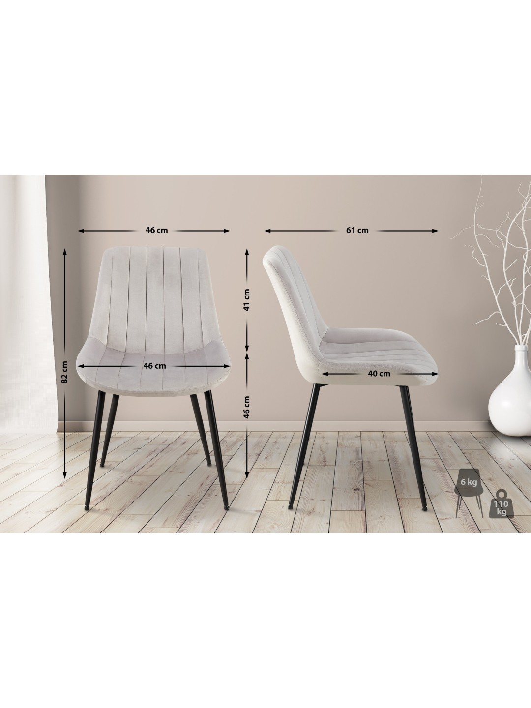Stol Rahden fløjl, lysegrå