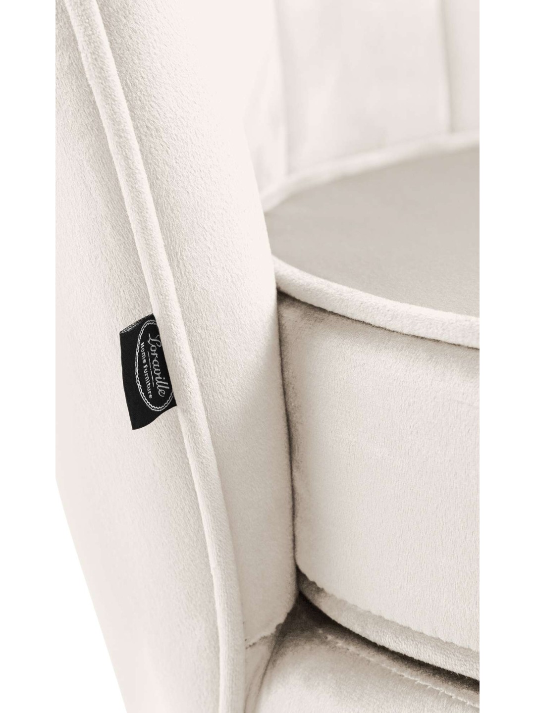 Det polstrede runde ryglæn og den 20 centimeter tykke sædehynde er altafgørende for behageligt at sidde. Det plejevenlige fløjlsbetræk er særligt behageligt.