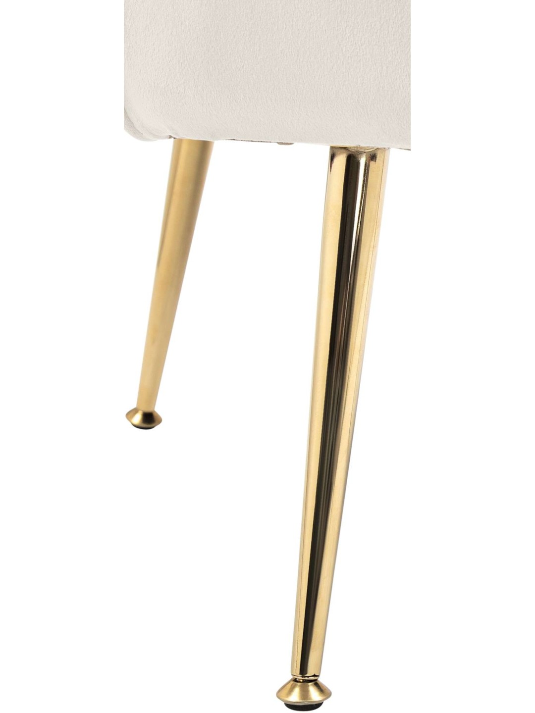 Det unikke look kommer fra de smukke dekorative syninger og det let takkede ryglæn. I kombination med de guldfarvede stoleben skiller lænestolen sig ud fra andre stole.