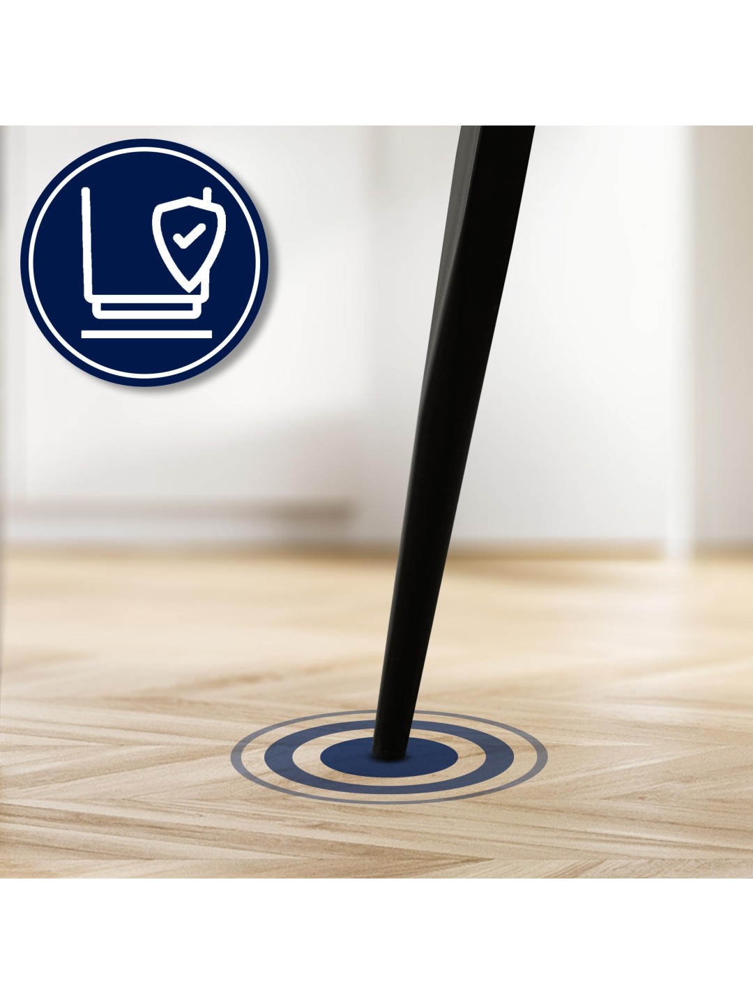 Fundamentet for denne spisestuestol er det stabile og robuste firbenede stel af sort, pulverlakeret metal. Tirana stolen kan belastes med op til 150 kg uden tøven. Gulvbeskyttere forhindrer skader på følsomme gulve.