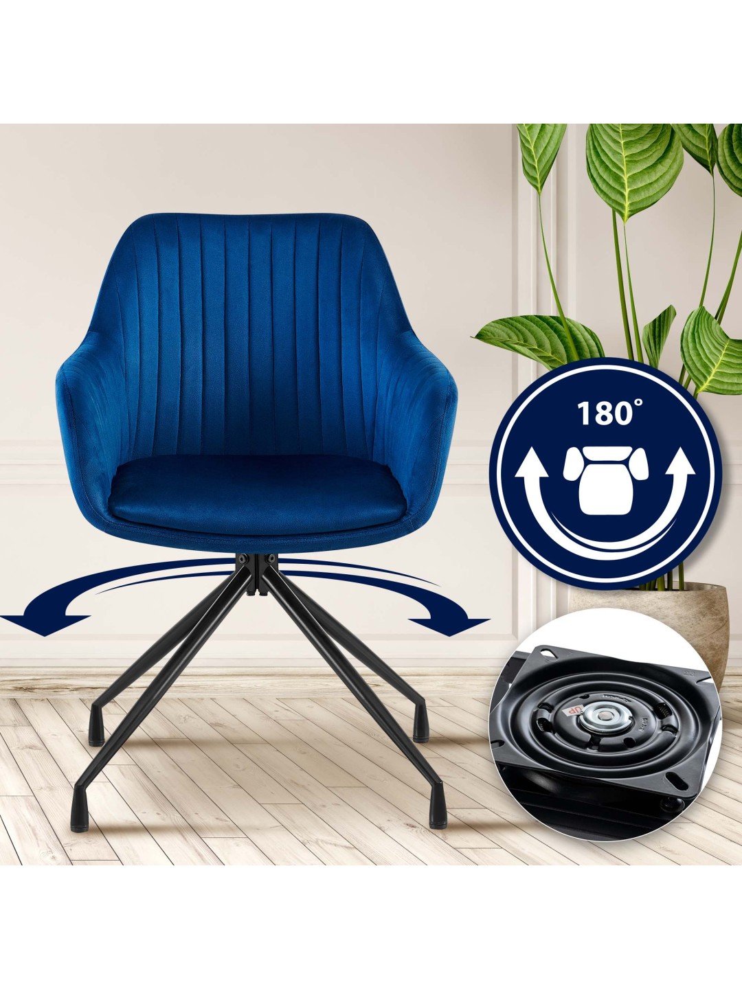 Den praktiske drejefunktion gør, at sædet kan drejes 180 grader og giver yderligere bevægelsesfrihed. Stabiliteten sikres af den pulverlakerede firbenede ramme lavet af matsort metal, som giver en maksimal belastningskapacitet på op til 150 kg.