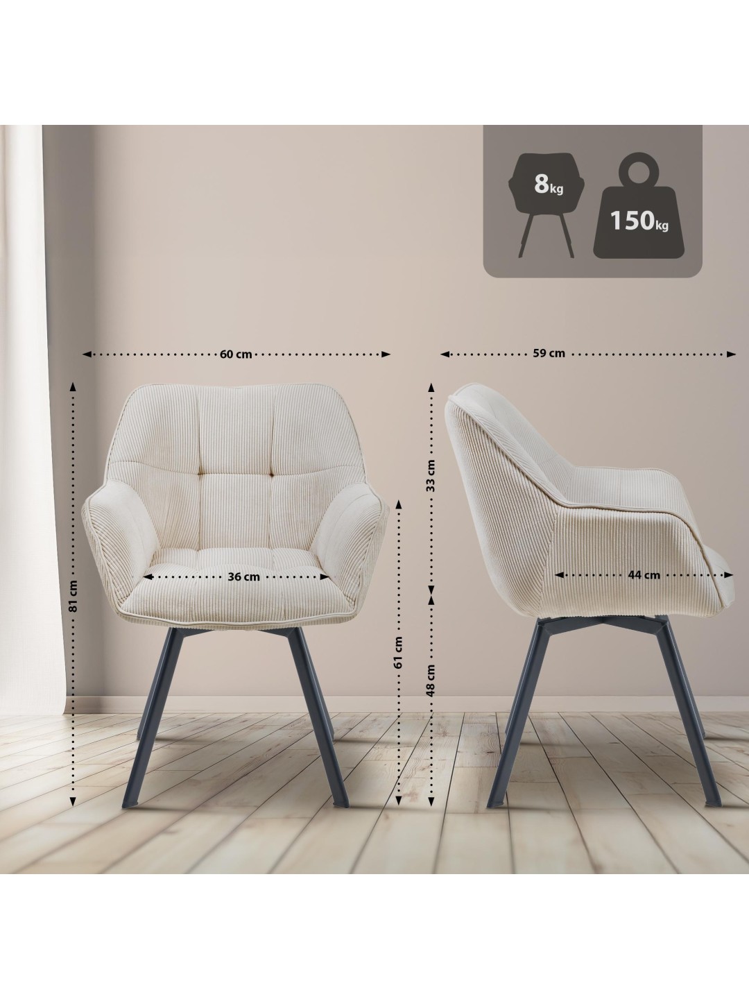 Spisestuestol Jordi Cord, creme