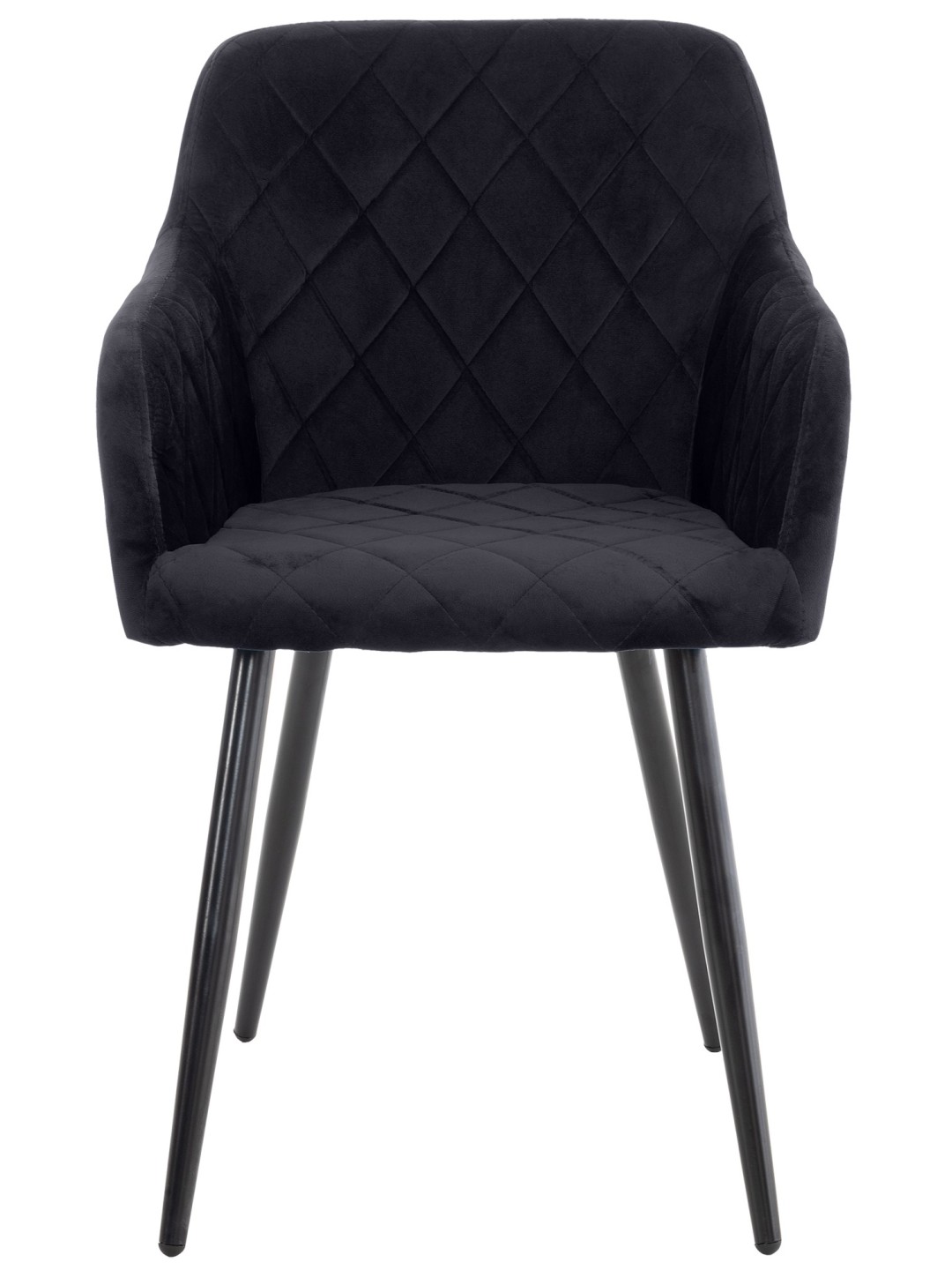 Shila spisestuestolen er en komfortabel men stilfuld siddemulighed til hverdagsbrug. Stolen har et generøst polstret sæde og giver derfor mulighed for behageligt at sidde selv over længere tid. Siddekomforten suppleres af ryglæn og armlæn. Den firbenede metalramme lover stabilitet og sikker stående. Denne spisestuestol giver et moderne flair og komplementerer ethvert boligmiljø vidunderligt. Der er også gulvbeskyttere under fødderne for at forhindre, at gulvet bliver ridset. Spisestuestolen fås med enten fløjl eller stofbetræk.
