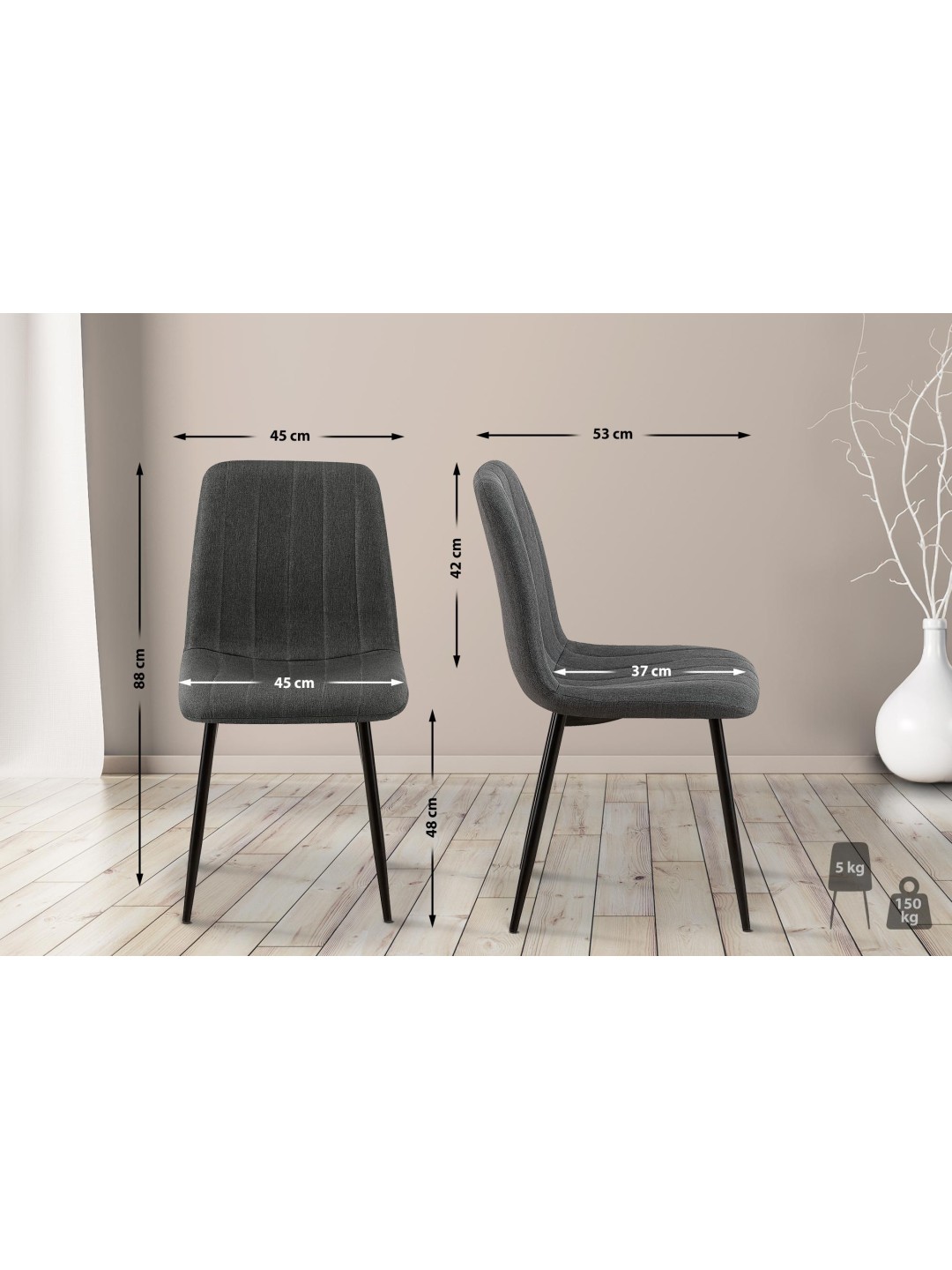 Stol Dijon stof, mørkegrå